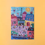 The reversible thirty-six piece puzzle can be flipped and solved on either side, creating different pictures. The first side details Paris during the day and the second side shows Paris at night. From cafes, artists and chefs, to the city that never sleeps, discover Paris' sparkling city life.