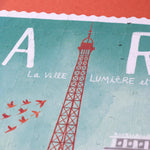 Paris La Ville Lumiere reversible puzzle made in Barcelona. Includes 350 pieces with illustrations by Can Seixanta. Finished puzzle measures approx 67 x 48 cm.