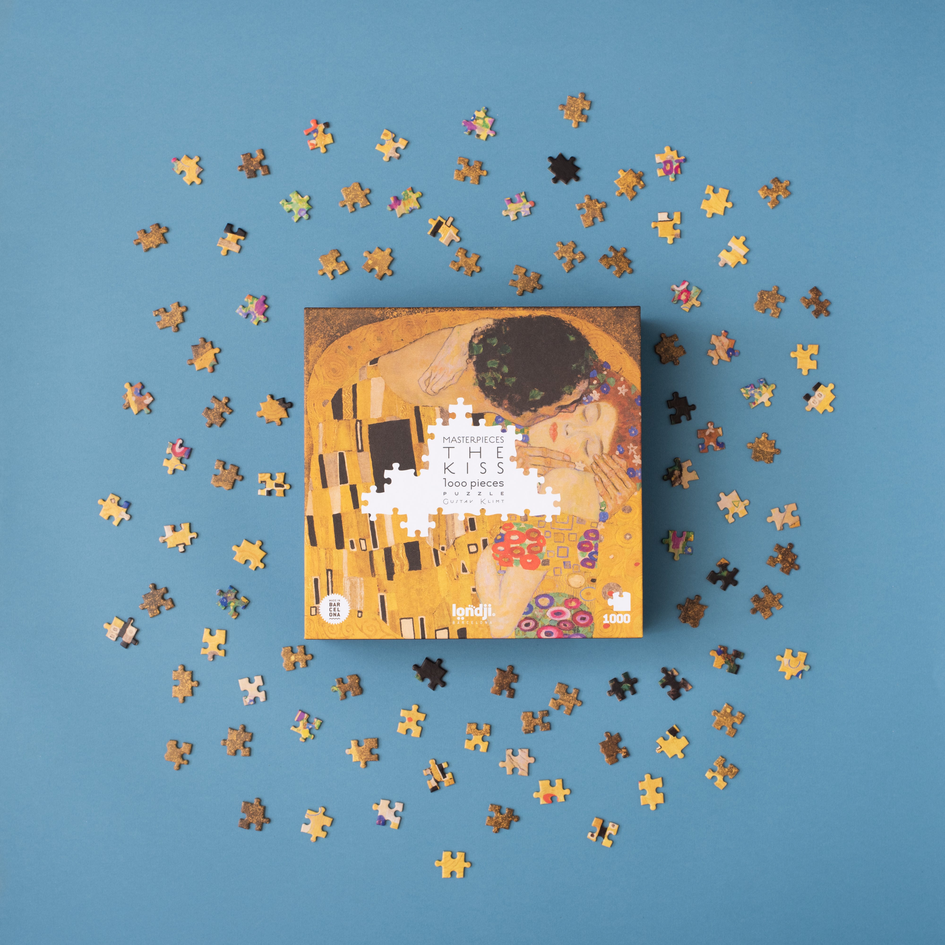 A 1000-piece puzzle of the masterwork Kiss by Gustav Klimt.