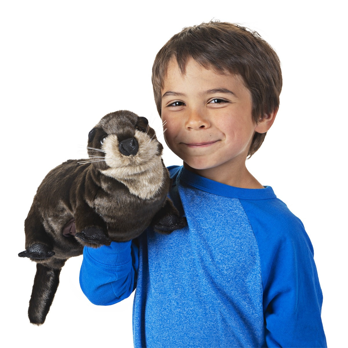 Folkmanis Puppets joyful river otter squiggles with delight when you work its mouth, head and tail with the movement of your hands. This two-handed puppet features handsome chestnut fur and detailed webbing on his leathery feet.
