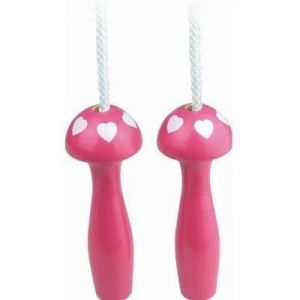 Fuchsia heart skipping rope Made in France by VILAC. Rope is adjustable, measuring approximately 2 meters