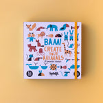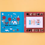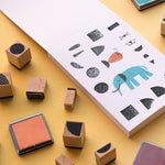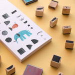 Create your own animals with stamps! Lions, elephants, whales, fish, giraffes... and as far as your imagination goes! 16 wooden stamps with notebook included for your wildest creations!
