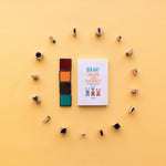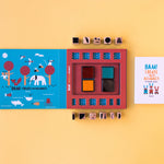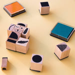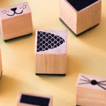 Illustration by Can Seixanta. Made with wood and rubber and comes in a sturdy cardboard box. Box size 19 x 19 x 2.8 cm. Stamp size 1.9 x 1.9 cm.