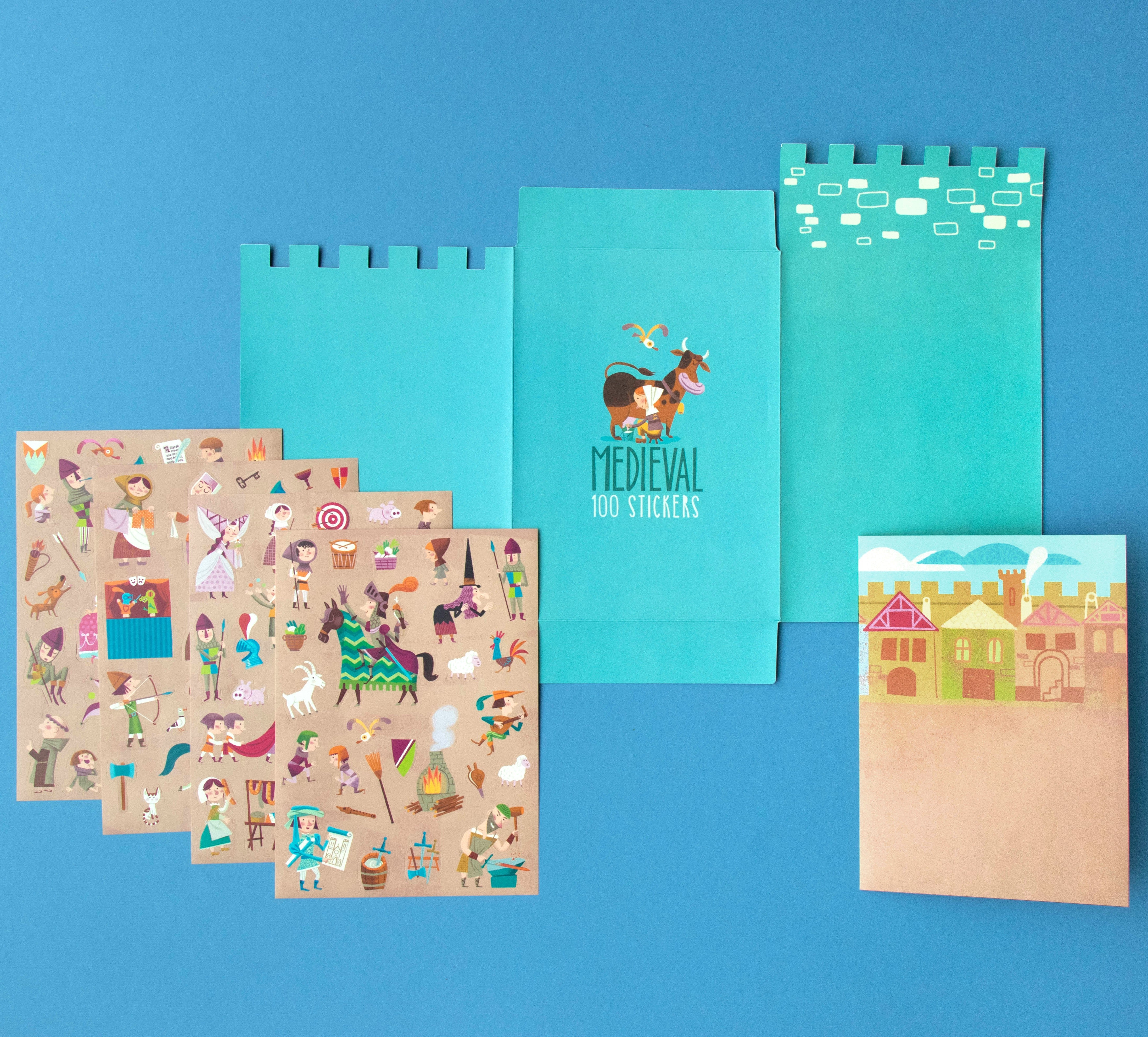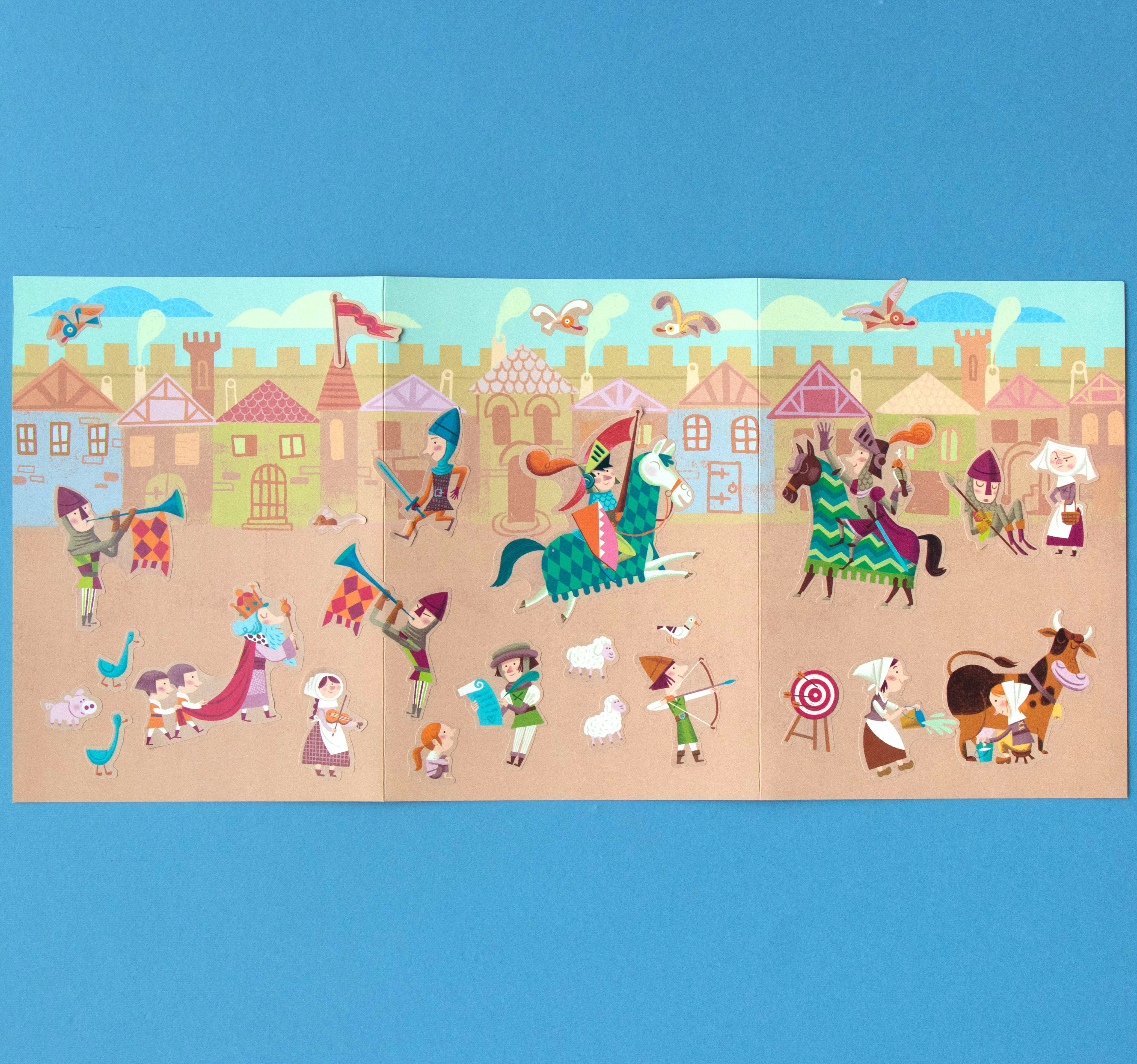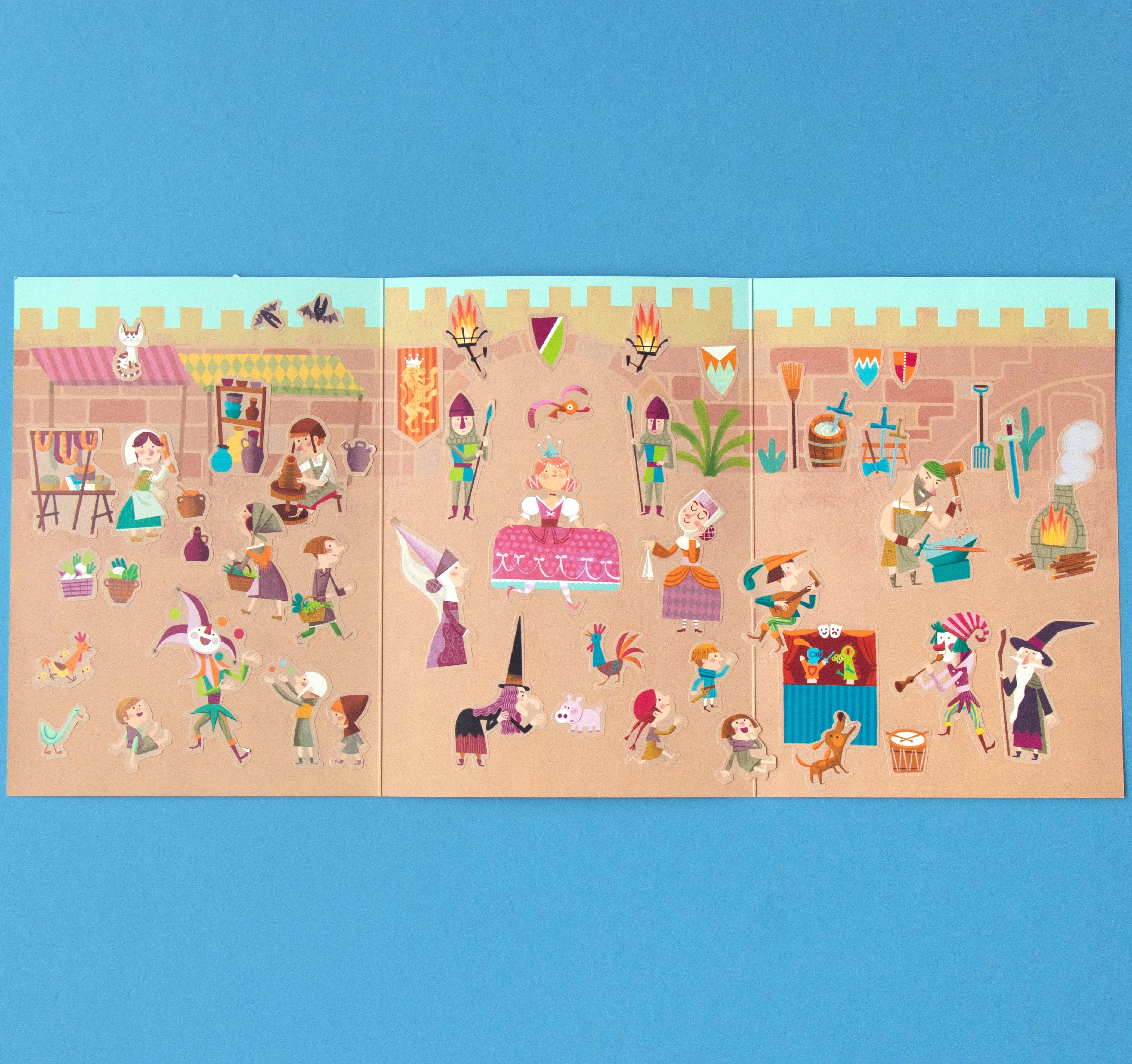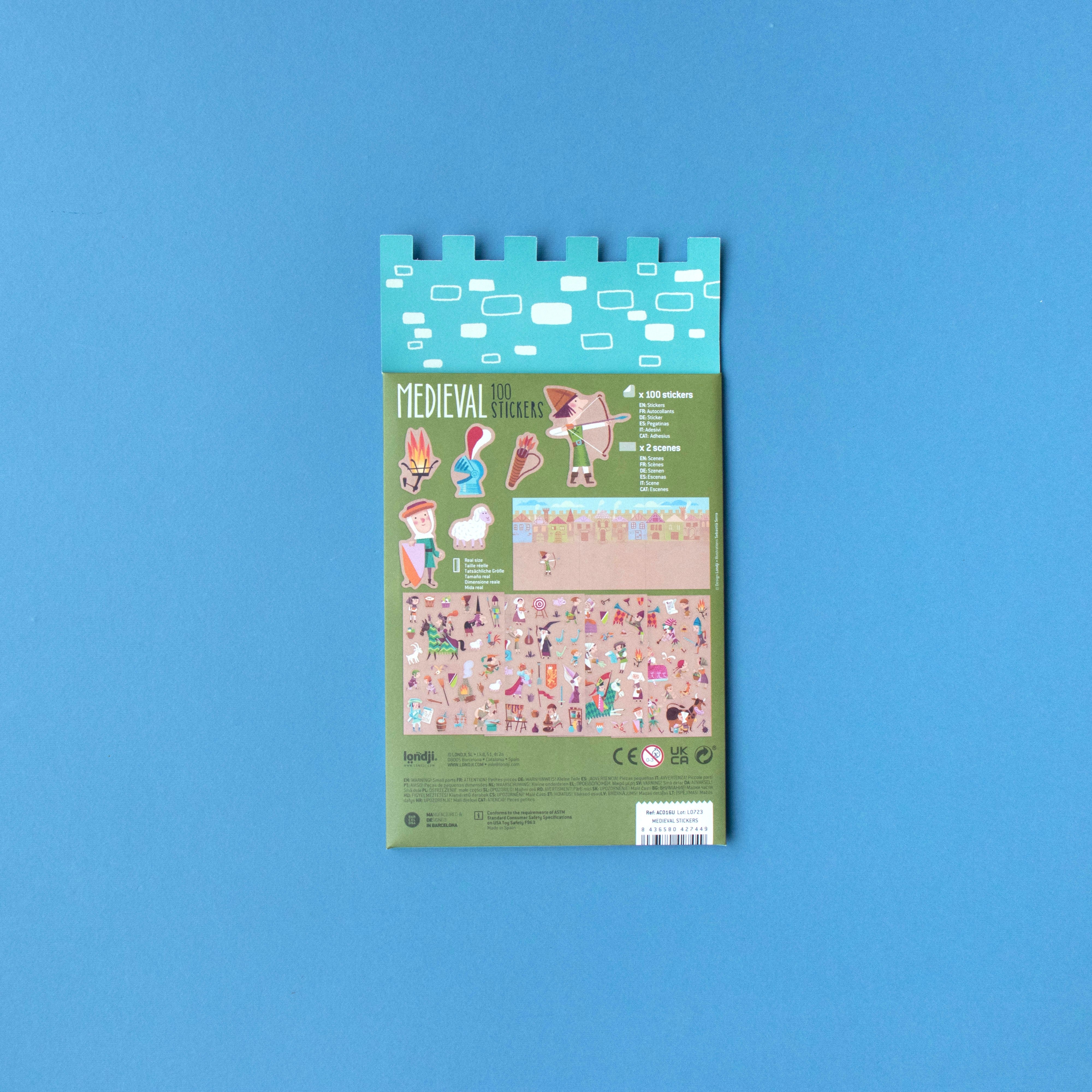 A handicraft with 100 stickers to take everywhere you go. Create your favourite medieval scenery as many times as you like with the removable stickers! A set of 100 removable stickers from the Middle Ages with different characters for you to build the scene you like best!