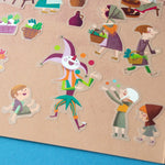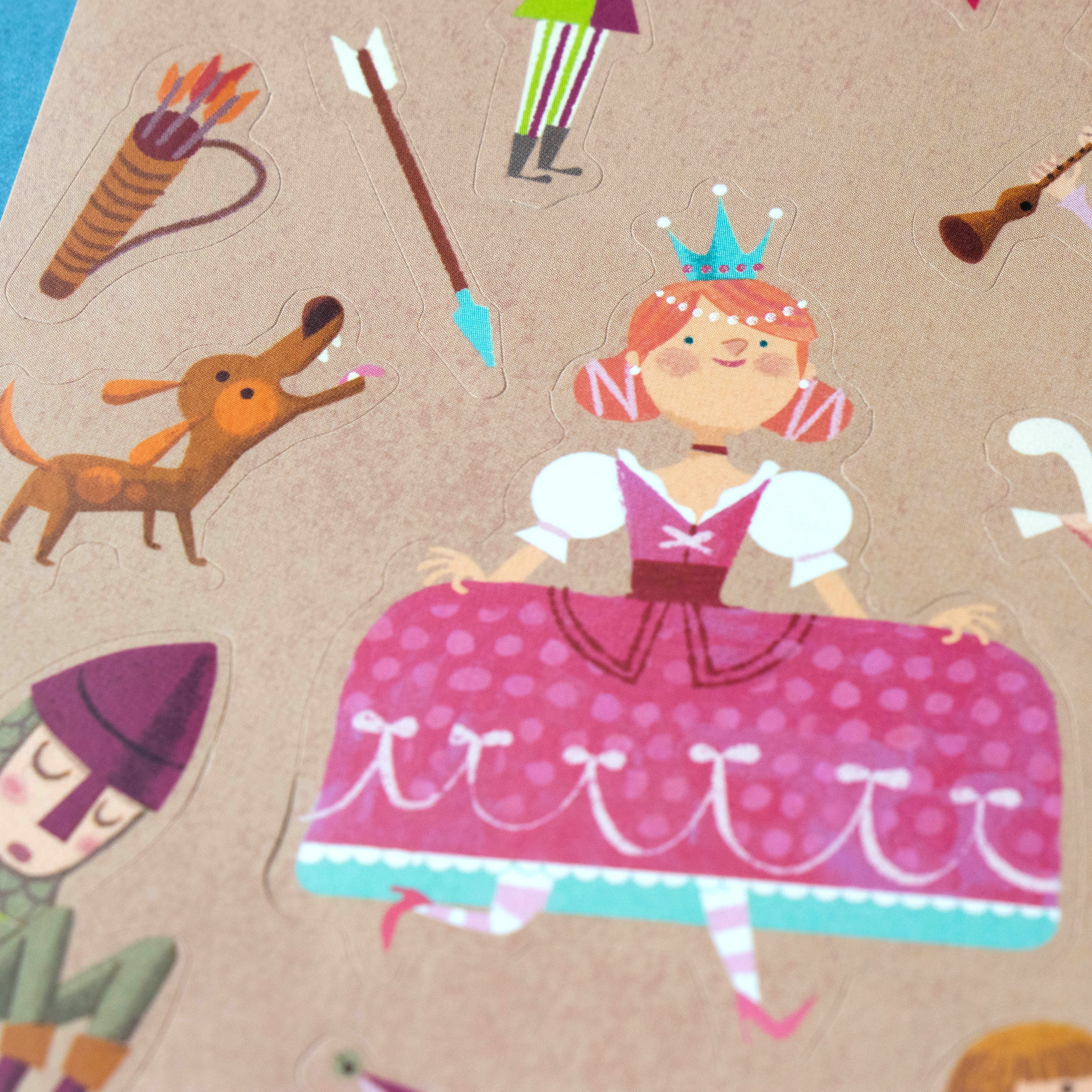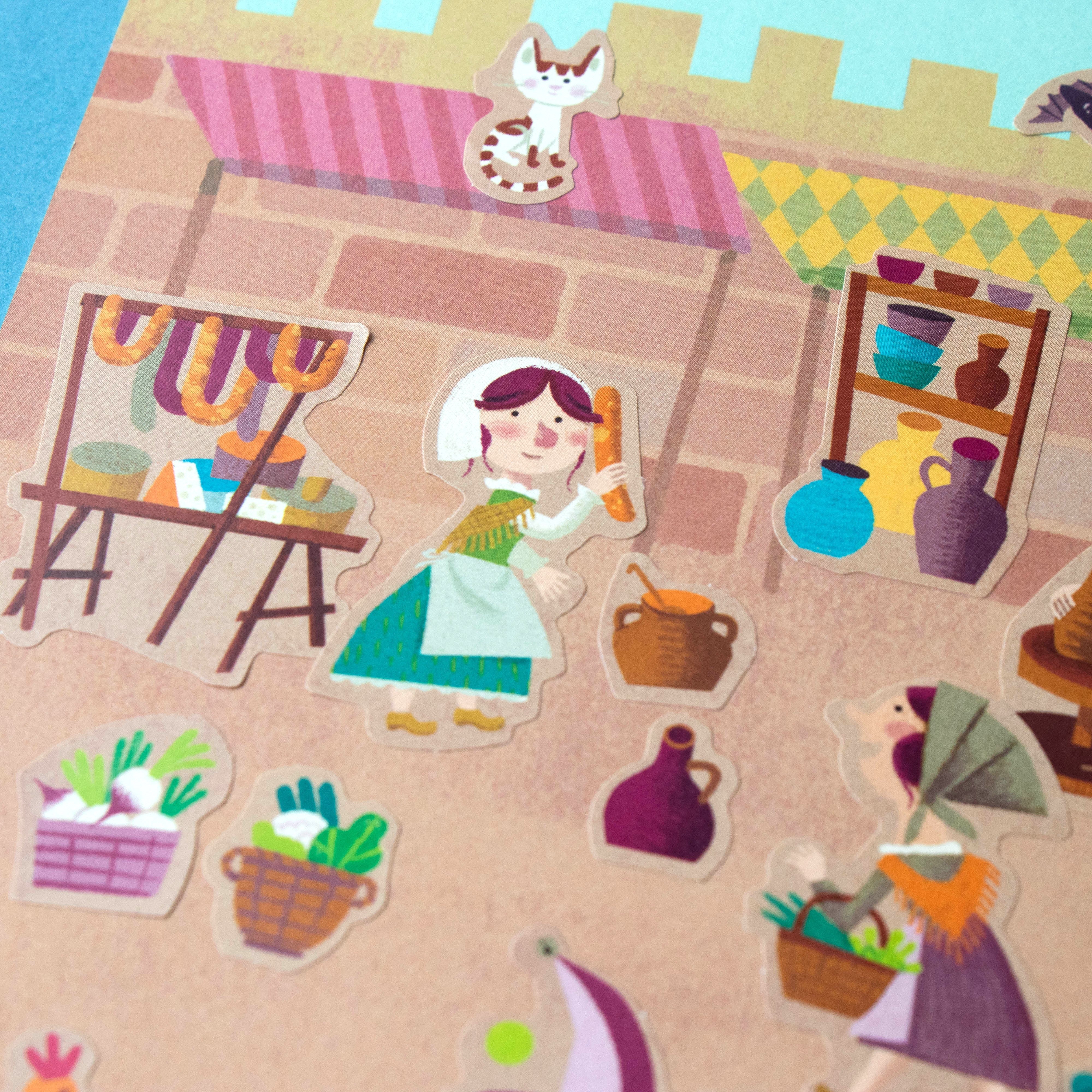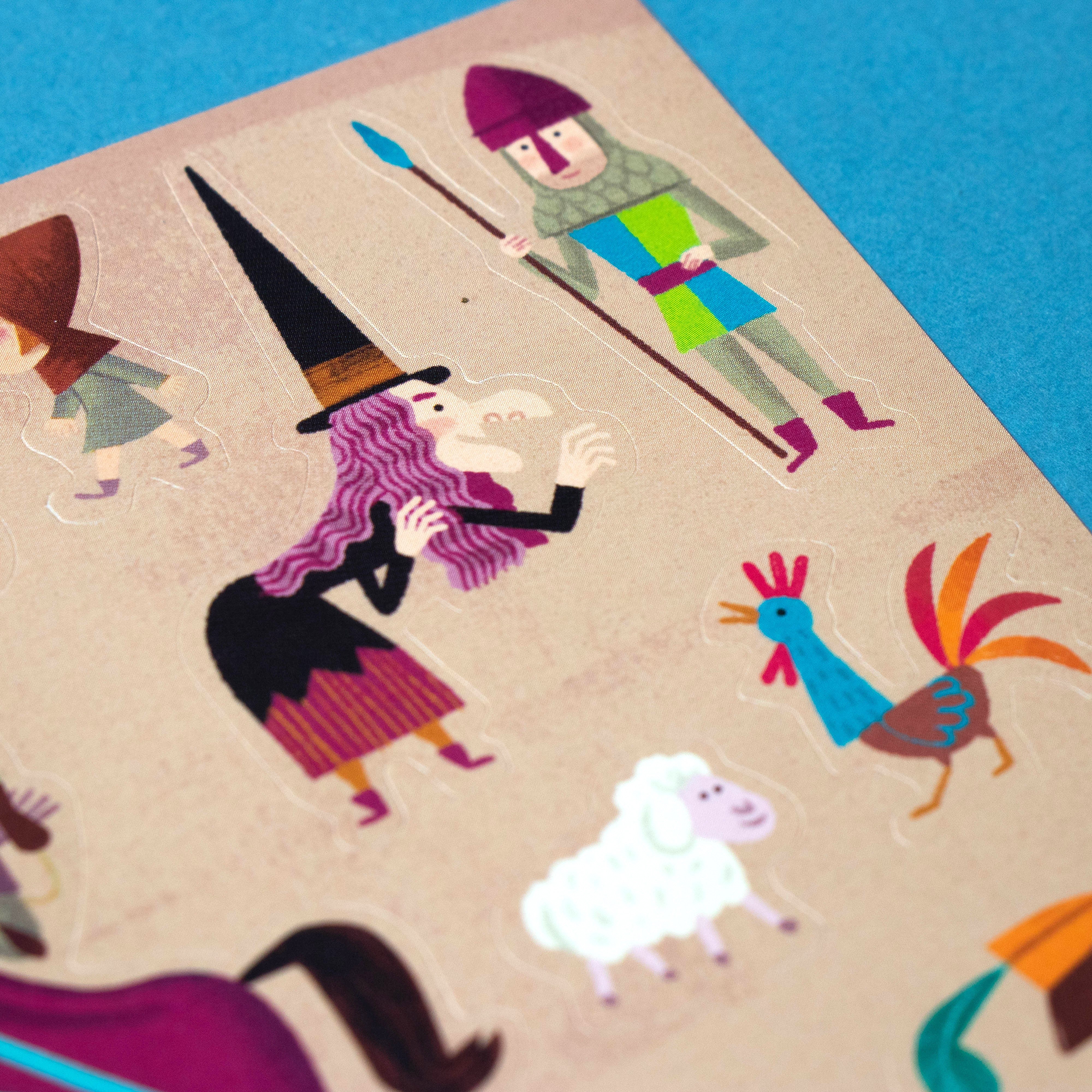 A handicraft with 100 stickers to take everywhere you go. Create your favourite medieval scenery as many times as you like with the removable stickers! A set of 100 removable stickers from the Middle Ages with different characters for you to build the scene you like best!