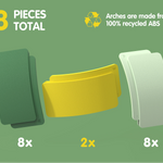 Contains: - 2 yellow arches - 8 dark green arches - 8 mint grey arches