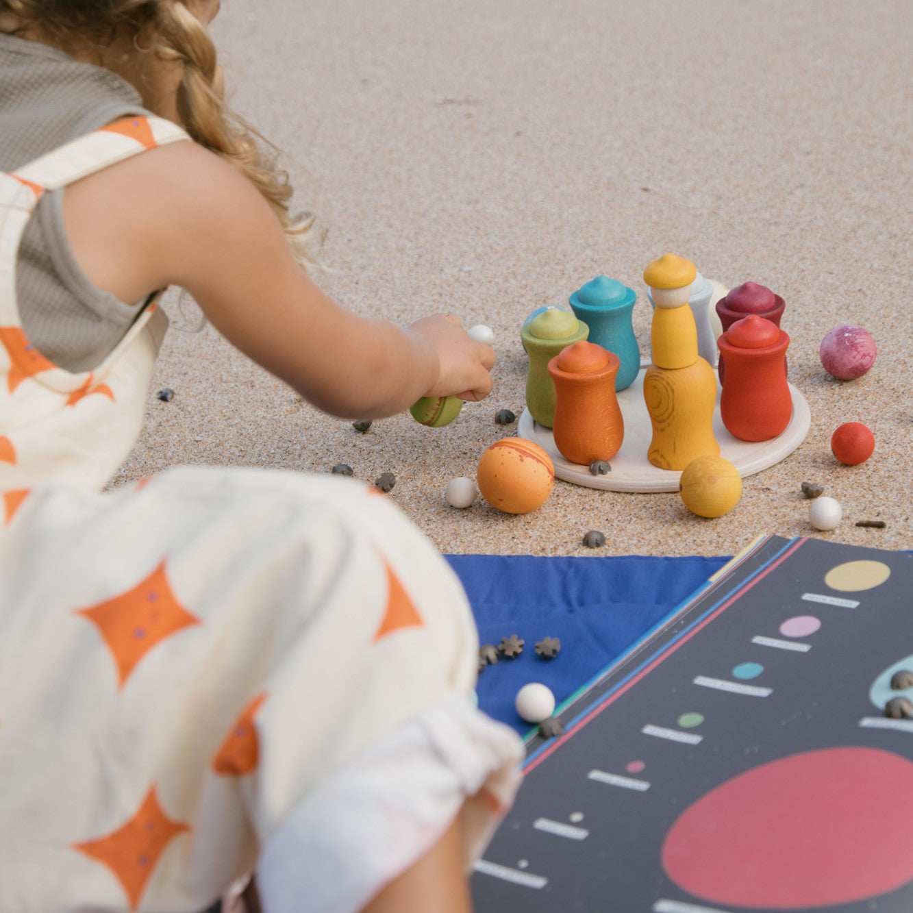 The Dear Universe contains more than 40 wooden pieces / sizes from 12mm in diameter to 45mm in diameter. This set can be combined with the weekly calendar 17-168 (sold separately).