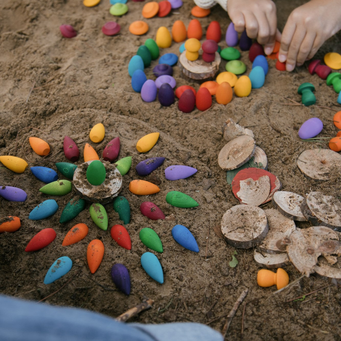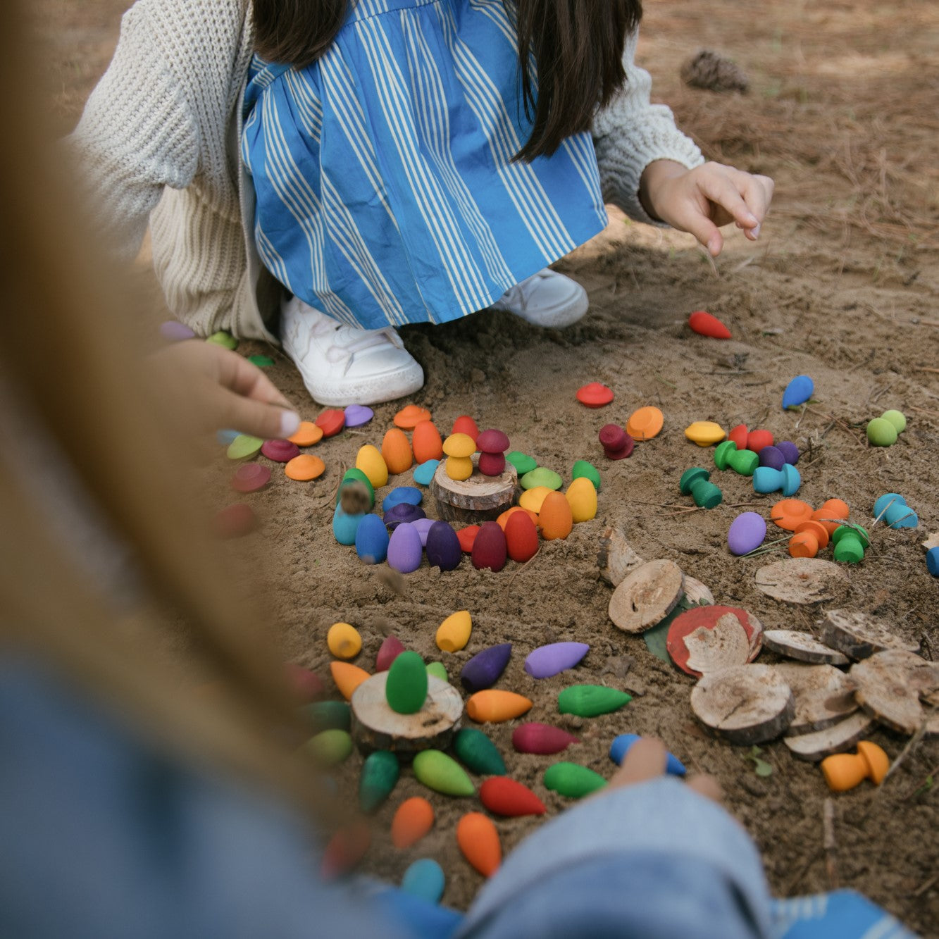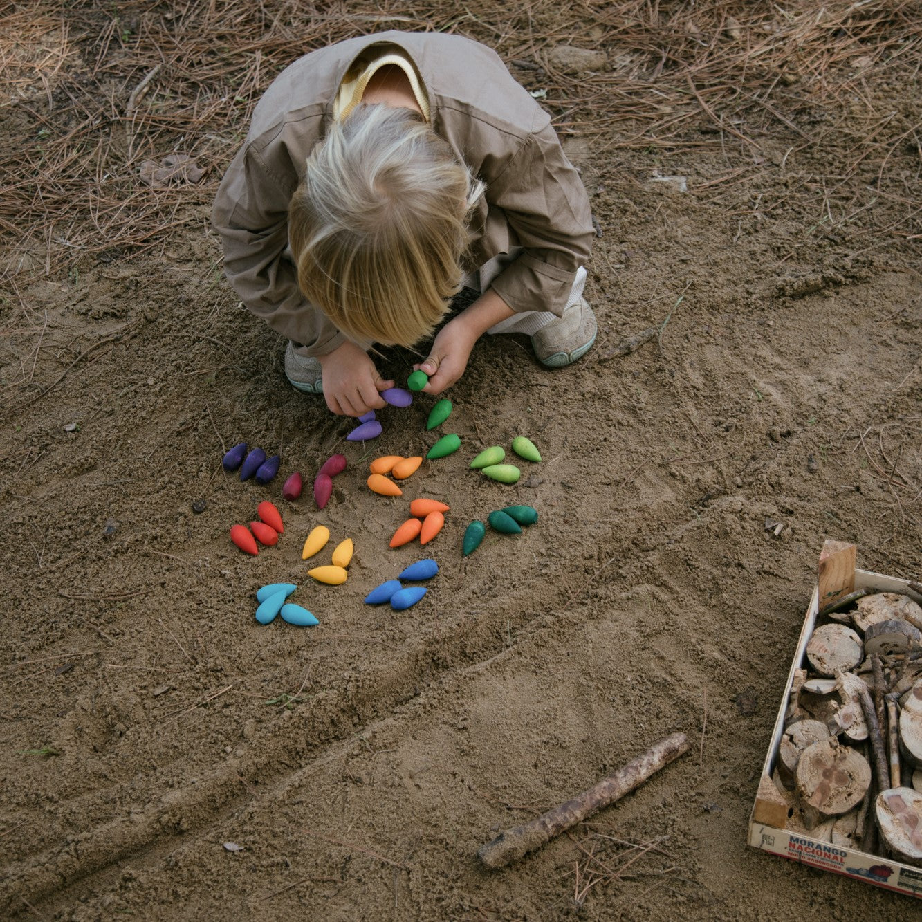 GRAPAT provides material without instructions, open-ended and autonomous play. Their only premise is to let children play, slowly, without time limits. Grapat hand crafts materials that encourage, invite and stimulate the creation of invented little worlds. Grapat is made following traditional processes, in the old way, with thick soft raw materials, natural dyes which let the wood veins be seen and vibrant coloured waxes and oils that slightly shine. The products are painted by hand, homemade, surrounded by nature and many children nearby that inspire the makers daily.