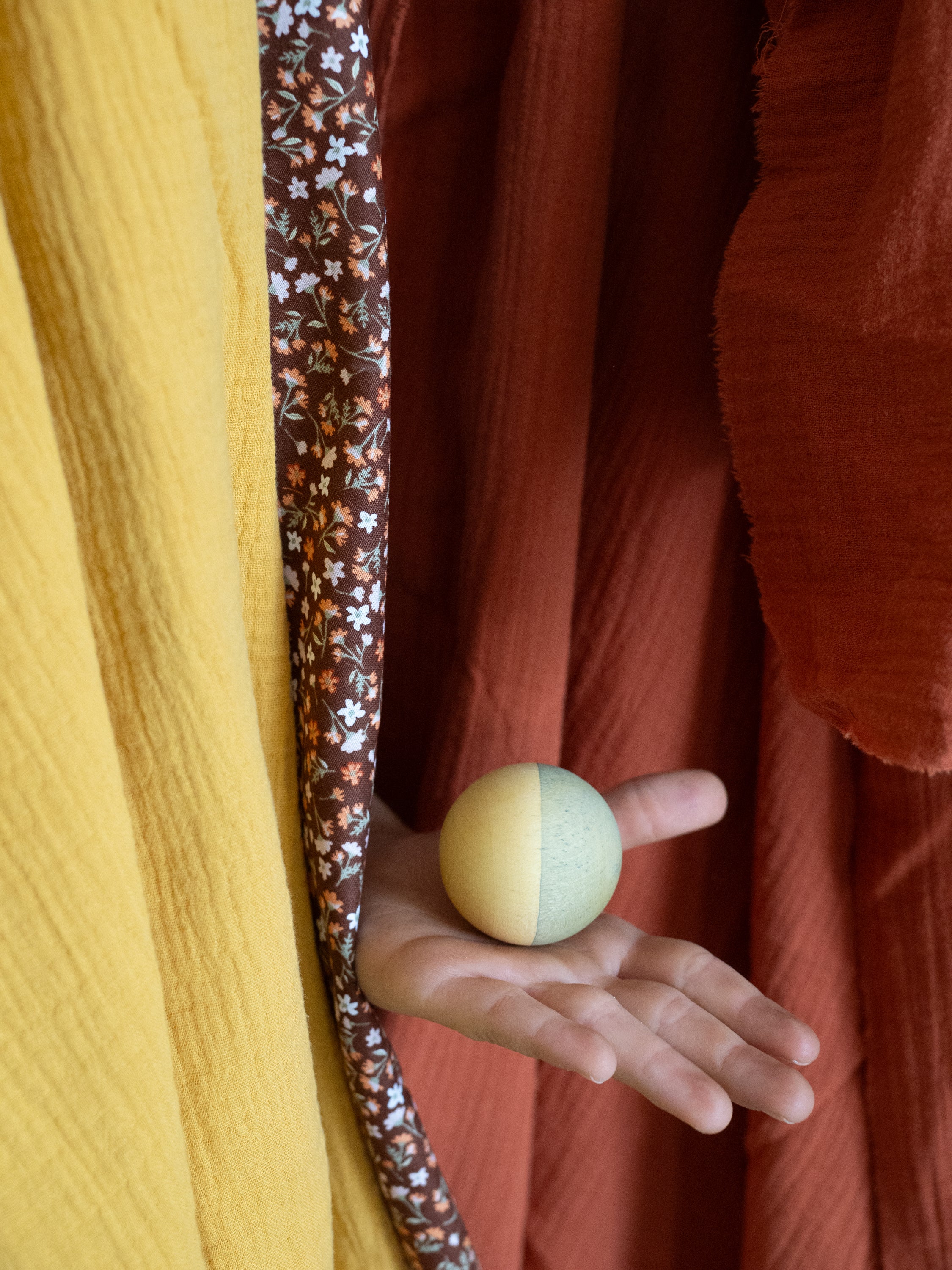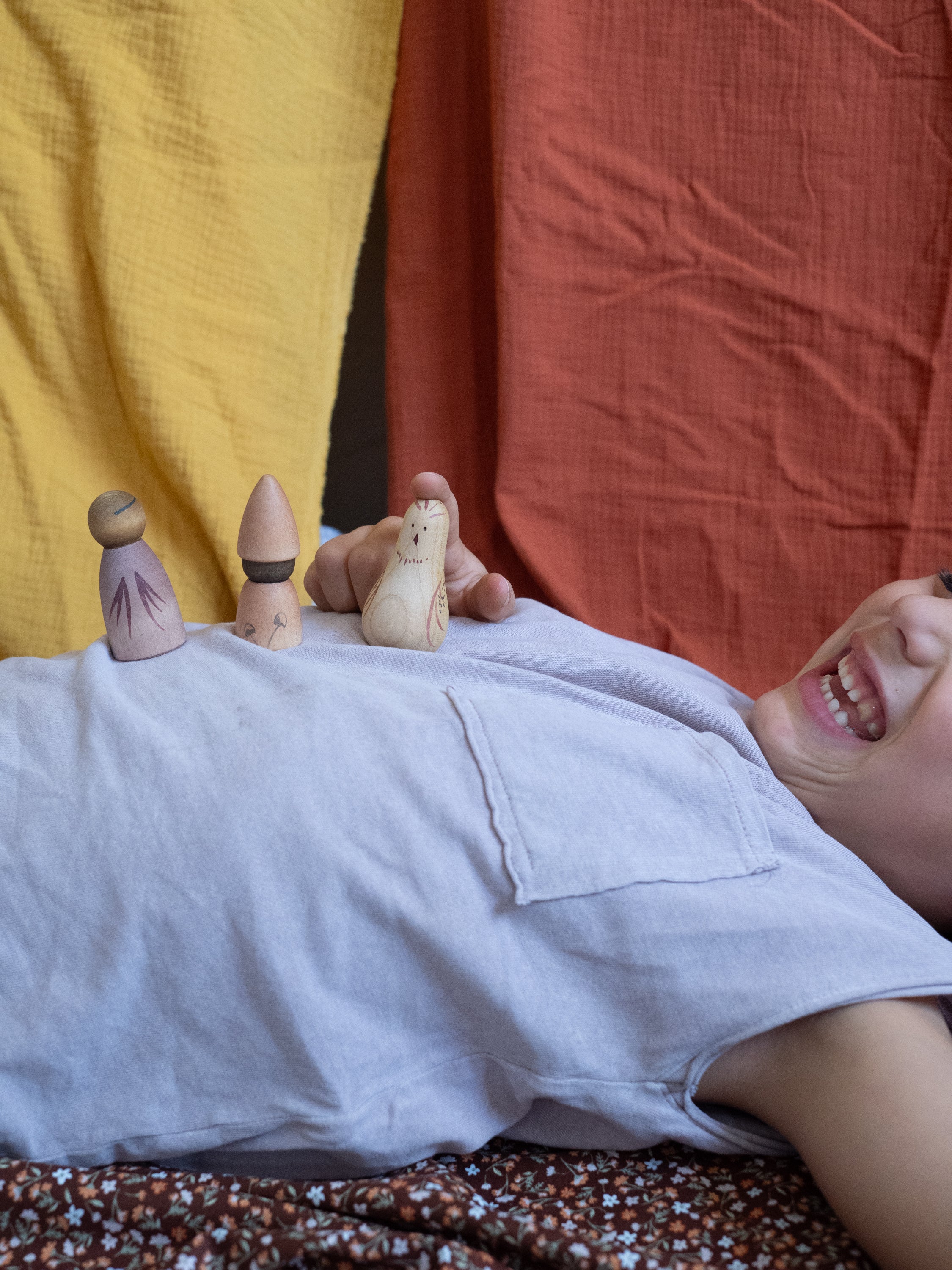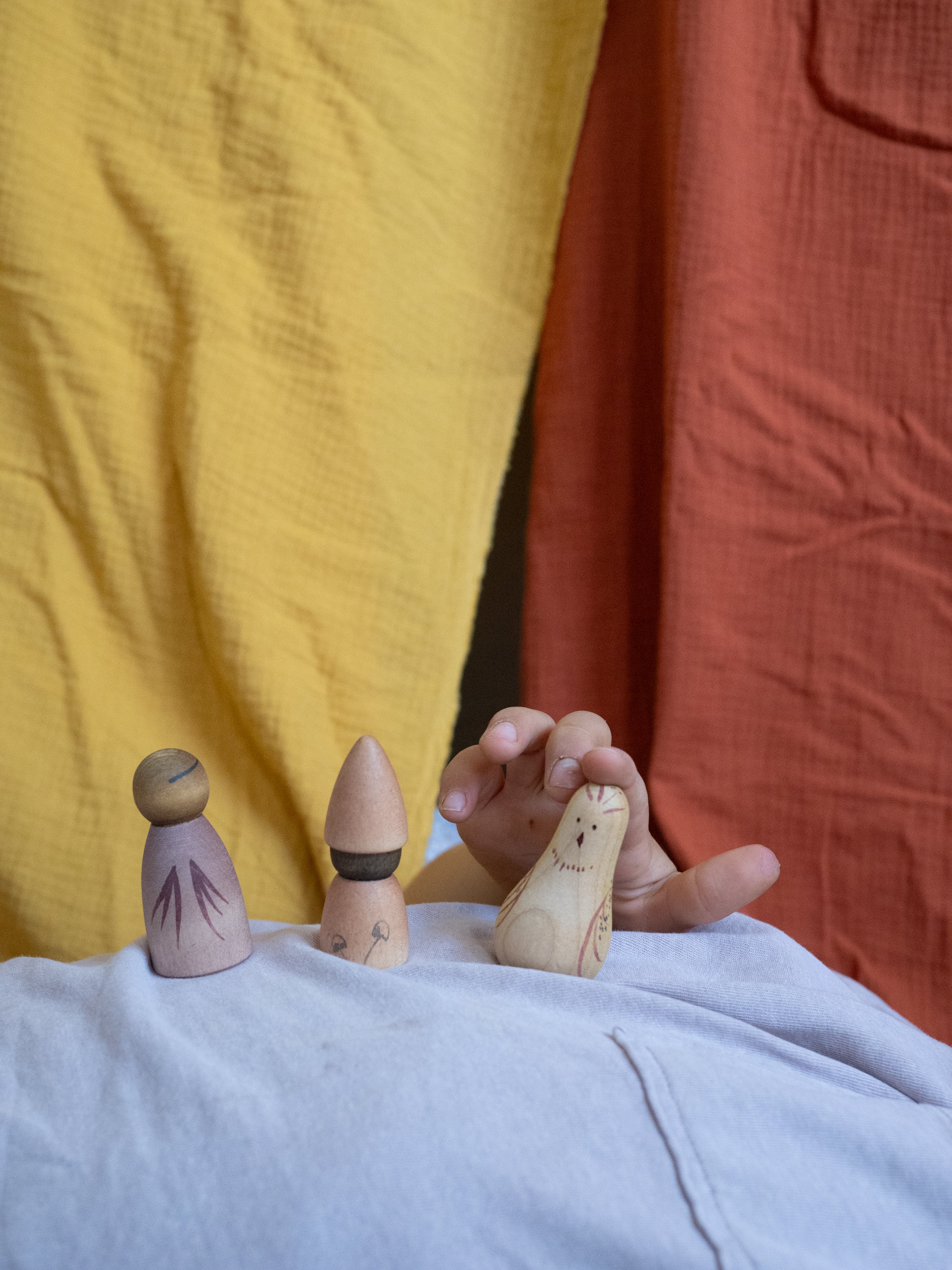 GRAPAT provides material without instructions, open-ended and autonomous play. Their only premise is to let children play, slowly, without time limits. Grapat hand crafts materials that encourage, invite and stimulate the creation of invented little worlds. Grapat is made following traditional processes, in the old way, with thick soft raw materials, natural dyes which let the wood veins be seen and vibrant coloured waxes and oils that slightly shine. The products are painted by hand, homemade, surrounded by nature and many children nearby that inspire the makers daily.